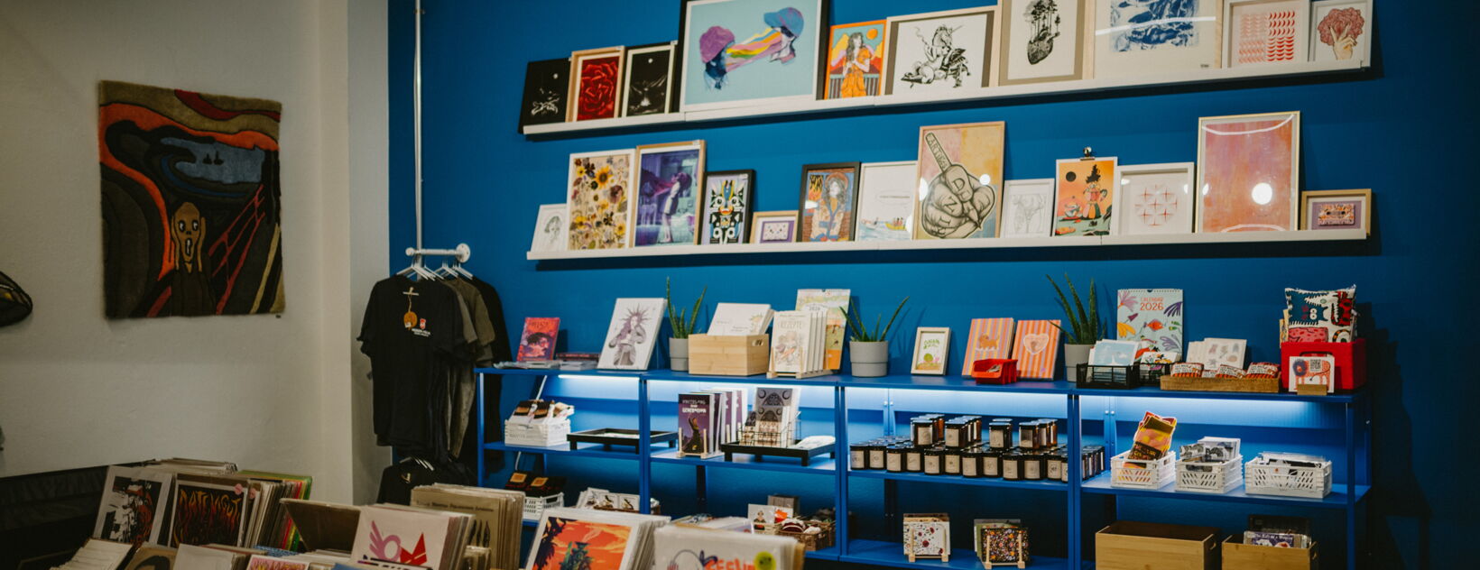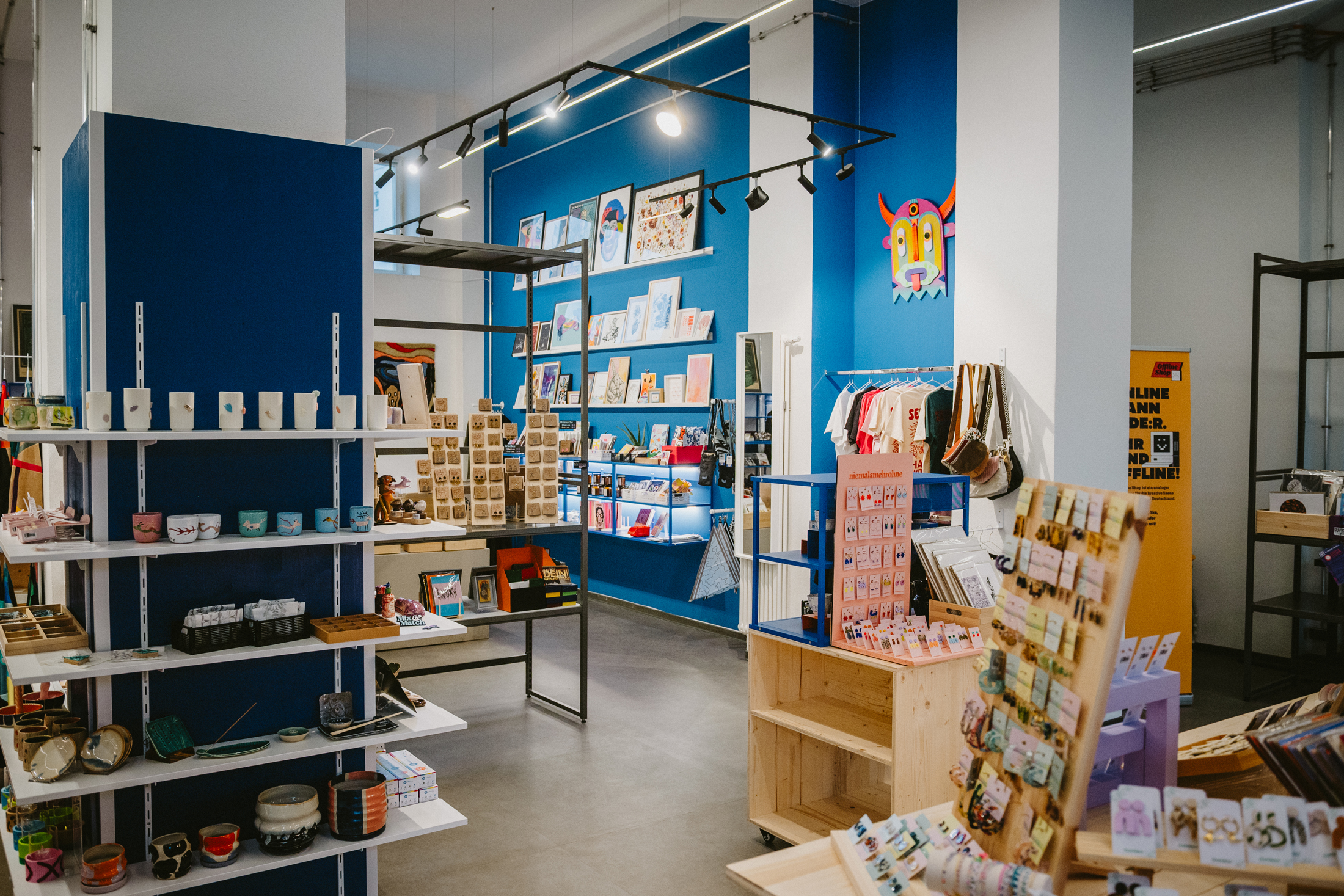 Der Offline Shop vertritt über 160 Künstler und Künstlerinnen aus Dresden und ganz Deutschland, darunter Leipzig, Berlin, Hamburg, Bremen, Halle u. v. m. Hier findet man von Kunstdrucken, Kleidung, Schmuck, Wohnaccessoires, Büchern, Musik und Handwerkskunst alles, was das Herz begehrt.