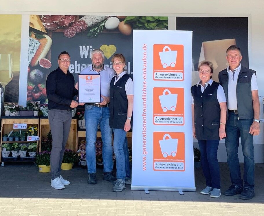Das familiengeführte Unternehmen EDEKA Kaden/Seidel aus dem staatlich anerkannten Erholungsort Sayda mitten im malerisch gelegenen Naturpark Erzgebirge wurde in diesem Jahr erstmalig mit dem Qualitätszeichen „Generationenfreundliches Einkaufen“ ausgezeichnet. Für die Familie Seidel und Katzschner und dem ganzen Team war es schon immer eine Herzensangelegenheit, dass alle Kunden jeder Generation in einer familienfreundlichen und angenehmen Atmosphäre komfortabel einkaufen können. Der tägliche Anspruch eine hohe Service- und Dienstleistungsqualität zu erbringen, spiegelte sich in den ausgezeichneten Prüfungsergebnissen wieder. Jörg Vulturius vom Handelsverband Sachsen gratuliert Familie Katzschner (l. im Bild) und Familie Seidel vom EDEKA Markt in Sayda ganz herzlich zur erfolgreichen Zertifizierung.
