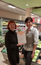 Im Bild v.l.n.r. Yvonne Redlich vom Handelsverband Sachsen e. V. und Steffi Lehmann von der REWE Wirker OHG, Geschäftsstelle Straße des 17. Juni.