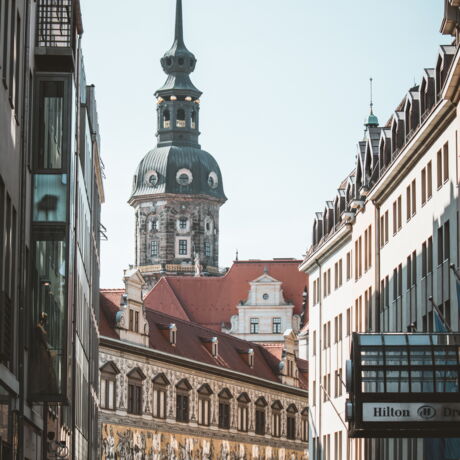 Neben dem Hotel Hilton befinden sich in der Nähe das Hotel Steigenberger de Saxe, Kempinski, Motel One am Zwinger und weitere Hotels.